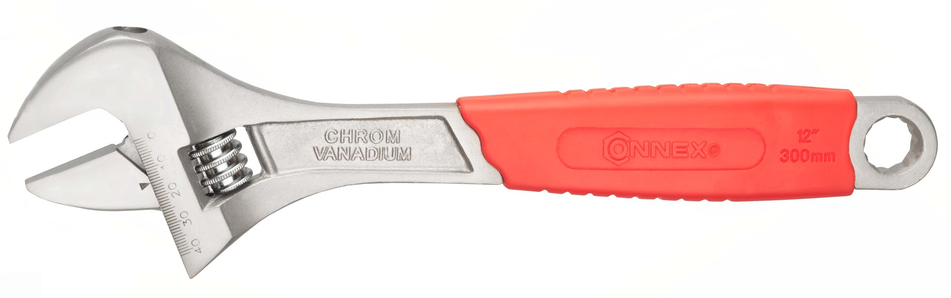 Mit dem Rollgabelschlüssel von CONNEX lässt sich schnell und einfach arbeiten, da die Schlüsselweite stufenlos einstellbar ist und dadurch ein Schlüsselwechsel entfällt. Mit der Skalierung lässt sich die Schlüsselweite genau einstellen. Der Rollgabelschlüssel ist verchromt, poliert und mit einem rutschfesten Kunstoffgriff ausgestattet. Am Griffende verfügt der Schlüssel zusätzlich über einen Ringschlüssel.
