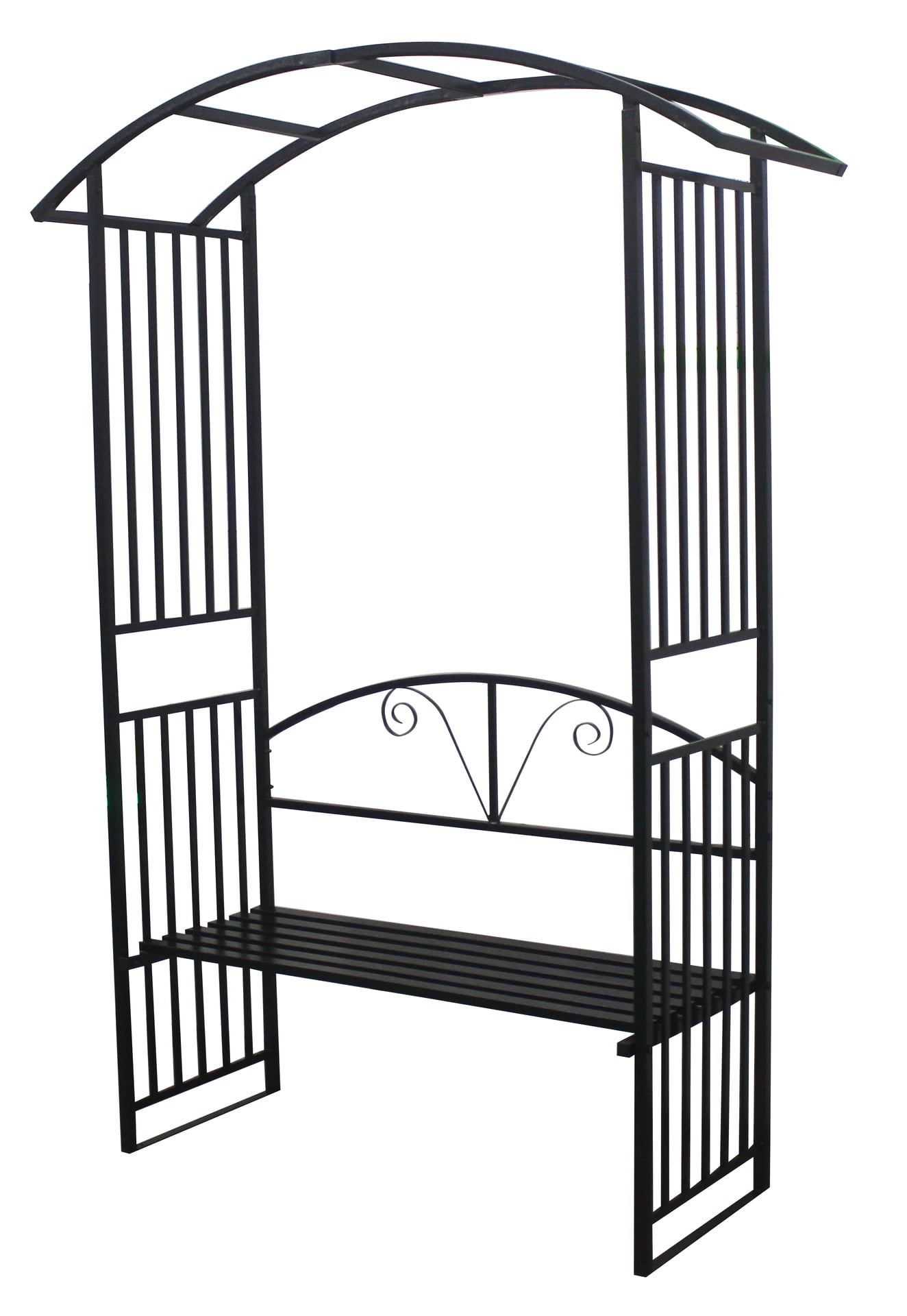 Rosenbogen mit integrierter Sitzbank, Stahl, schwarz