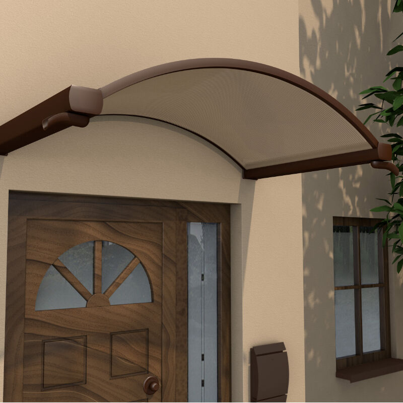 Rundbogenvordach Bremen bronce Das Rundbogenvordach Bremen in der Farbe Bronze ist eine herausragende Wahl, um Ihrem Eingangsbereich einen besonderen Charakter zu verleihen. Egal, ob Sie sich für das weiße oder das braune Modell entscheiden, das Vordach besticht durch sein stilvolles Design und seine robuste Konstruktion, die Ihrem Hauseingang nicht nur einen modernen Look verleiht, sondern auch optimalen Schutz bei unterschiedlichsten Witterungsbedingungen bietet. Das Vordach besteht aus einem stabilen Rahmen aus pulverbeschichtetem Aluminium, der für seine Langlebigkeit und Witterungsbeständigkeit bekannt ist. Die Pulverbeschichtung schützt das Aluminium vor Korrosion und sorgt dafür, dass das Vordach auch nach vielen Jahren noch ansehnlich bleibt. Der Rahmen ist sowohl in Weiß als auch in Braun erhältlich, sodass Sie das Vordach perfekt an die Farbgestaltung Ihres Hauses anpassen können. Die 6 mm starke Polycarbonat-Stegplatte in Bronze verleiht dem Vordach nicht nur eine elegante, dezente Farbgebung, sondern bietet auch hervorragenden Schutz vor Regen, Schnee und UV-Strahlung. Polycarbonat ist ein äußerst widerstandsfähiges Material, das für seine hohe Schlagfestigkeit und Langlebigkeit bekannt ist, wodurch Ihr Eingangsbereich stets optimal geschützt bleibt. Ein weiteres praktisches Merkmal des Rundbogenvordachs Bremen sind die beidseitig angebrachten Regenrinnen. Diese sorgen dafür, dass Regenwasser effektiv abgeleitet wird, sodass es nicht direkt vor Ihrer Tür herunterläuft und unerwünschte Pfützen oder Rutschgefahr verursacht. Die Regenrinnen tragen so nicht nur zur Funktionalität bei, sondern erhöhen auch den Komfort beim Betreten Ihres Hauses, insbesondere bei schlechtem Wetter. Das Vordach wurde zudem mit einer Schneelast von 75 kg/m² getestet, was bedeutet, dass es auch in schneereichen Regionen zuverlässig Schutz bietet. Selbst bei starken Schneefällen bleibt das Vordach stabil und sicher, sodass Sie sich auch in den Wintermonaten auf die Qualität und Funktionalität verlassen können. Im Lieferumfang des Rundbogenvordachs Bremen ist das passende Montagematerial bereits enthalten, darunter hochwertige Schrauben und Dübel, die speziell für die Befestigung an festem Mauerwerk ausgelegt sind. Dies erleichtert die Montage und gewährleistet eine sichere und dauerhafte Installation. Für eine noch umfassendere Schutzwirkung können Sie in unserem Onlineshop zudem eine passende Seitenblende erwerben. Diese ergänzt das Vordach perfekt und schützt zusätzlich die Seiten Ihres Eingangsbereichs vor Wind und Regen, was besonders bei starkem Seitenwind von Vorteil ist.