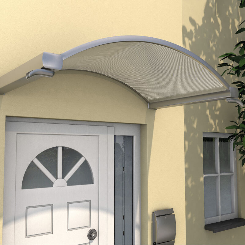 Rundbogenvordach Bremen Das Rundbogenvordach Bremen ist die perfekte Ergänzung für jeden Eingangsbereich, der nicht nur funktional, sondern auch ästhetisch ansprechend gestaltet sein soll. Durch sein modernes und stilvolles Design setzt es nicht nur optische Akzente, sondern bietet gleichzeitig einen zuverlässigen Schutz vor widrigen Witterungsbedingungen. Ob bei Regen, Schnee oder starkem Wind – das Rundbogenvordach Bremen hält Ihren Eingangsbereich trocken und schützt sowohl Sie als auch Ihre Gäste vor den Unannehmlichkeiten, die das Wetter mit sich bringen kann. Das Vordach besteht aus hochwertigen Materialien, die für ihre Langlebigkeit und Widerstandsfähigkeit bekannt sind. Der Rahmen aus pulverbeschichtetem Aluminium sorgt für eine stabile und robuste Konstruktion, die auch nach vielen Jahren noch in einwandfreiem Zustand ist. Die Abdeckung besteht aus einer 6 mm starken, klaren Polycarbonat Stegplatte, die nicht nur für einen modernen Look sorgt, sondern auch besonders stoß- und kratzfest ist. Dadurch bleibt das Vordach auch bei intensiver Nutzung und extremen Wetterbedingungen unbeschädigt und behält seine Transparenz. Ein besonderes Merkmal des Rundbogenvordachs Bremen sind die beidseitig angebrachten Regenrinnen. Diese leiten das Wasser effektiv ab, sodass es nicht unkontrolliert über den Rand des Vordachs tropft. Dies schützt nicht nur den Eingangsbereich, sondern verhindert auch, dass Wasser direkt auf den Boden vor Ihrer Haustür gelangt, was vor allem bei Frost gefährlich sein könnte. Die Schneelastprüfung mit einer Belastung von 75 kg/m² zeigt, dass das Vordach auch den Anforderungen in schneereichen Gebieten problemlos standhält. Diese Eigenschaft macht es zu einer idealen Wahl für Häuser in Regionen, in denen regelmäßig mit schweren Schneefällen zu rechnen ist. Dank der hohen Belastbarkeit bleibt das Vordach stabil und sicher, auch wenn sich Schnee auf der Oberfläche ansammelt. Das Rundbogenvordach Bremen wird mit allem notwendigen Montagematerial geliefert, das für die sichere Befestigung an festem Mauerwerk erforderlich ist. Dazu gehören hochwertige Schrauben und Dübel, die eine einfache und sichere Montage ermöglichen. Für zusätzlichen Schutz und eine erweiterte Funktionalität ist in unserem Onlineshop auch eine passende Seitenblende erhältlich. Diese Blende schützt die Seitenbereiche des Eingangs noch besser vor Wind und Regen und ergänzt das Rundbogenvordach optisch perfekt.