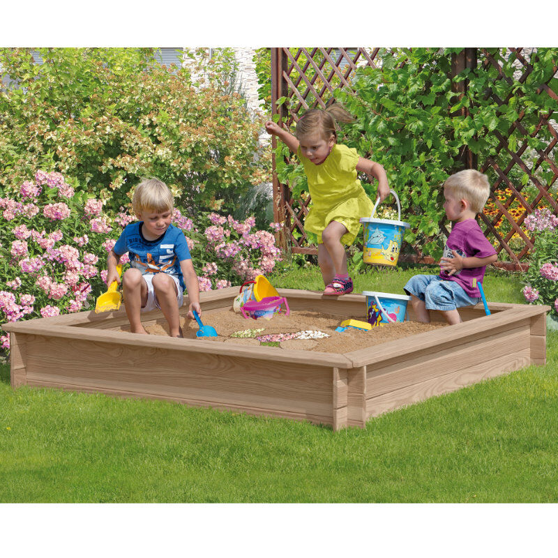 CONNI Sandkasten aus Lärche – kompakt und kindgerecht Natürlich spielen im eigenen Garten Der CONNI Sandkasten bietet Kindern einen sicheren und naturnahen Ort zum Spielen, Buddeln und Kreativsein. Gefertigt aus hochwertiger, naturbelassener Lärche überzeugt er durch seine robuste Bauweise und die natürliche Optik – ideal für den Einsatz im Garten oder auf dem Spielplatz. Kompakte Maße für flexible Platzierung Mit einer Größe von 150 x 150 x 25 cm passt der Sandkasten auch in kleinere Gärten oder Höfe. Die 20 mm starken Bretter sind gehobelt und gefast, was für glatte Oberflächen und eine angenehme Haptik sorgt. Die umlaufenden Sitzflächen bieten den Kleinen eine bequeme Möglichkeit, sich beim Spielen auszuruhen. Technische Details im Überblick Material: naturbelassene Lärche Maße: 150 x 150 x 25 cm Brettstärke: 20 mm, gehobelt und gefast Witterungsbeständig und langlebig Einfacher Aufbau – ideal für private Gärten Spielspaß mit natürlichem Holz Die Lärche ist bekannt für ihre hohe Witterungsbeständigkeit und eignet sich daher bestens für den Einsatz im Außenbereich. Der CONNI Sandkasten ist eine praktische Lösung für Familien, die ihren Kindern eine langlebige Spielfläche im Grünen bieten möchten.