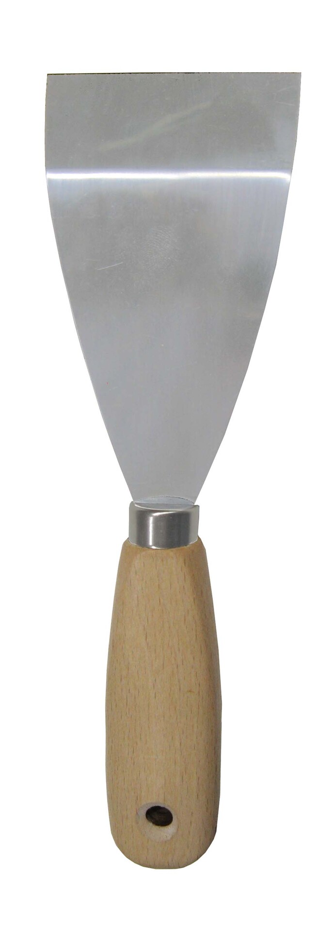 Der Schaberspachtel von CONNEX mit abgewinkelter Klinge, poliert, mit Holzheft, Breite: 70mm.