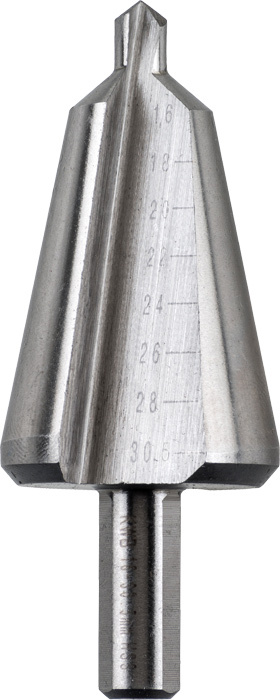 Der kwb HSS Schälbohrer verfügt über eine Anbohrspitze für stufenlose Bohrungen ohne Vorbohren von kleinen bis großen Durchmessern in dünne Bleche. Kantenbrecher des Bohrers sorgt für grat-freie Bohrungen ohne Kaltaufschweißung. Der Schälbohrer ist für Stahlblech, nicht Eisenmetalle und Kunststoff ideal geeignet.