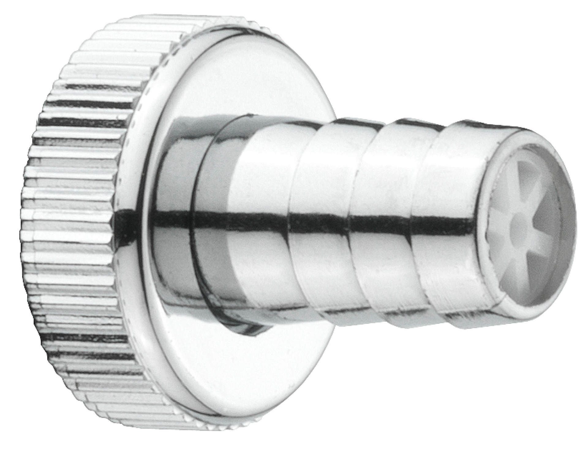 Schlauchverschraubung Kunststoff, Grau/verchromt, 2-teilig, Flachdichtend, 3/4″ IG, Tülle Ø 14 mm