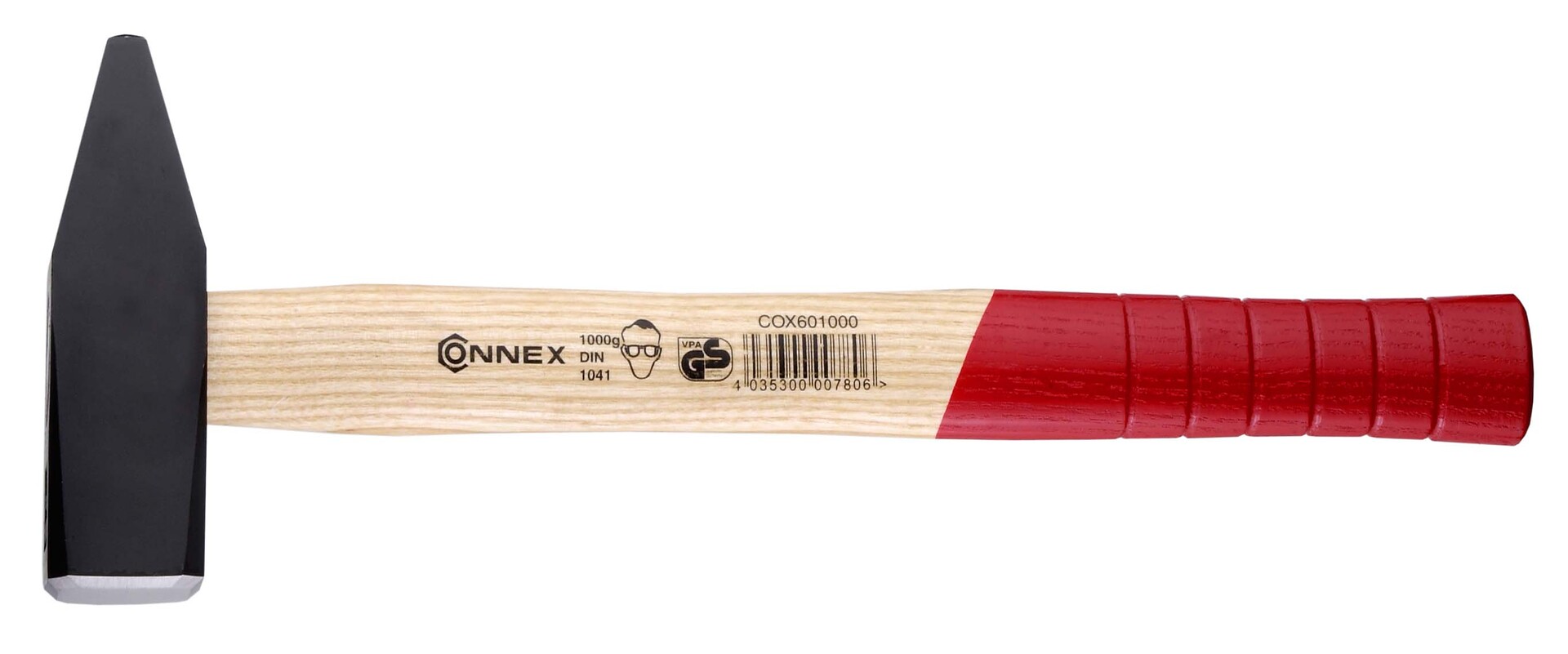Der CONNEX- Sicherheits- Schlosserhammer ist nach DIN 1041 gefertigt. Der geschweifte Eschenholzstiel ist mit einem Kunststoff versiegelt. Er ist in verschiedenen Gewichten erhältlich.