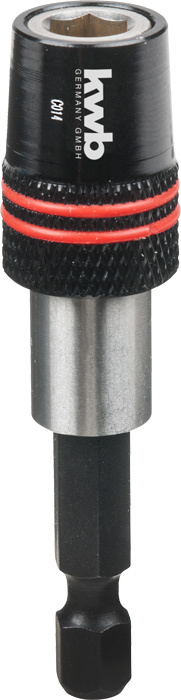 Schnellwechsel-Bithalter, Aufnahme 1/4″ Sechskant nach ISO 1173, mit Dauermagnet, Federring, Schnellwechselfunktion, Einhandbedienung, Bitfreigabe durch einfaches Zurückziehen der Metallhülse, Sechskantschaft 1/4″ Aufnahme nach ISO 1173, E 6.3.