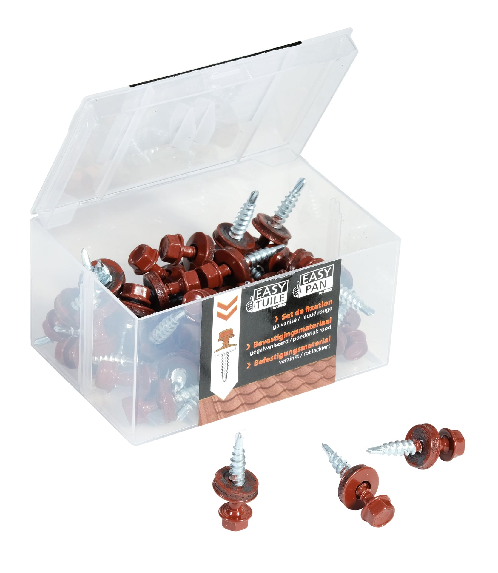 Selbstschneidende Schrauben in 35 mm mit EPDM-Dichtung für EASY-Pan: Zubehör für Dacheindeckung von geneigten Dächern mit Easy-Pan Dachelementen aus verzinktem Stahl mit körniger oder glatter Struktur.