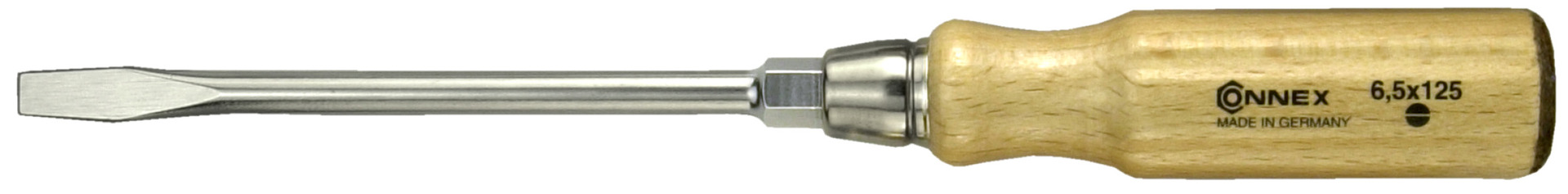 Verwenden Sie den Schraubendreher aus dem Hause CONNEX zum Lösen und Festziehen von filigranen Schraubverbindungen. Er verfügt über einen klassischen Buchenholzgriff mit Lederkappe und hat einen Schlitzantrieb sowie einen Sechskantansatz. Die Klinge des Schraubendrehers ist aus hochlegiertem, zähhartem Chrom-Vanadium-Spezialstahl gefertigt. In unserem Onlineshop ist der Schraubendreher in verschiedenen Größen erhältlich.