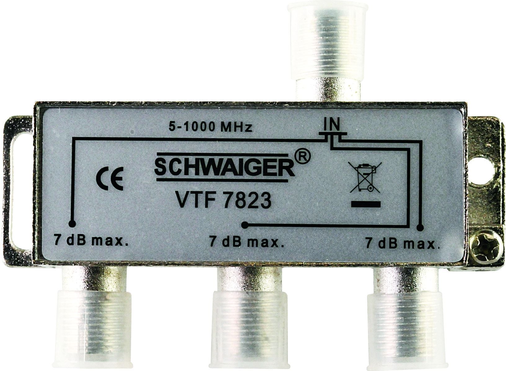 Der 3-fache Verteiler VTF7823 531 mit Anschlüssen in der F-Technik hat 4 x F-Buchsen und ist rückkanaltauglich. Er eignet sich für Breitbandkabel- und Antennen-Anlagen. Der Verteiler besteht aus einem massiven, korrosionsfesten Druckgussgehäuse.
