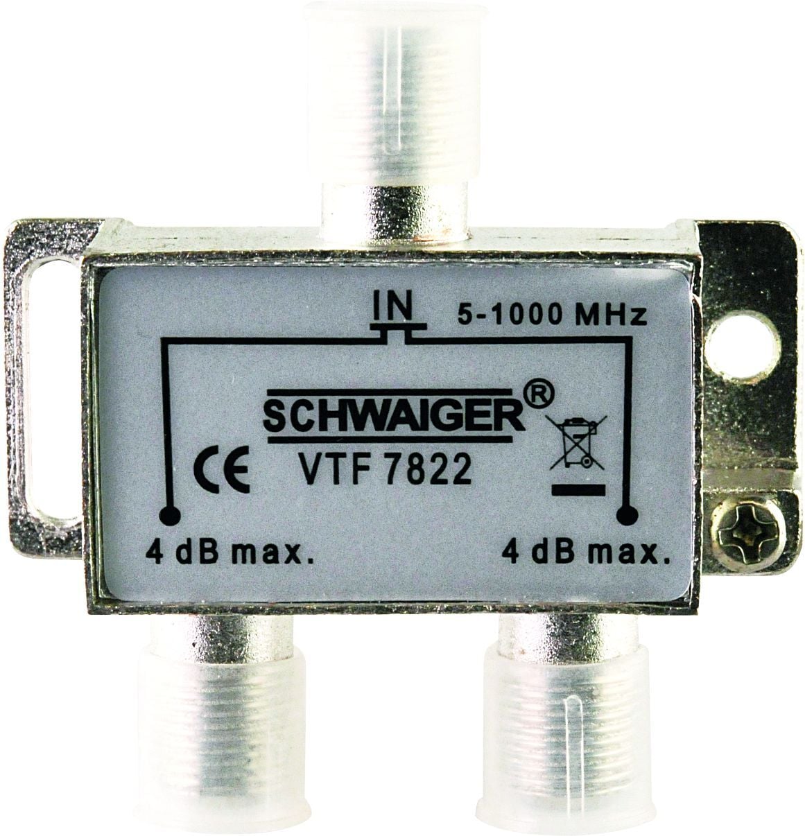 Der 2-fache Verteiler hat 3 x F-Buchsen-Anschlüsse und ist rückkanaltauglich. Er eignet sich für Breitbandkabel- und Antennen-Anlagen. Der Verteiler besteht aus einem massiven, korrosionsfesten Druckgussgehäuse.