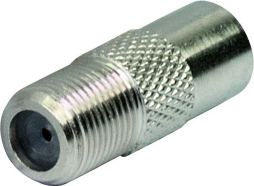 Der silberne F-Adapter UEST9330 531 hat 1 x F-Buchse auf 1 x Koaxial (IEC)-Stecker. Er dient zum Verbinden von Kabeln mit F-Steckern mit Kabeln mit Koaxialbuchse. Der Adapter besteht aus vernickeltem Metall. Die Größe beträgt ca. 25 mm.