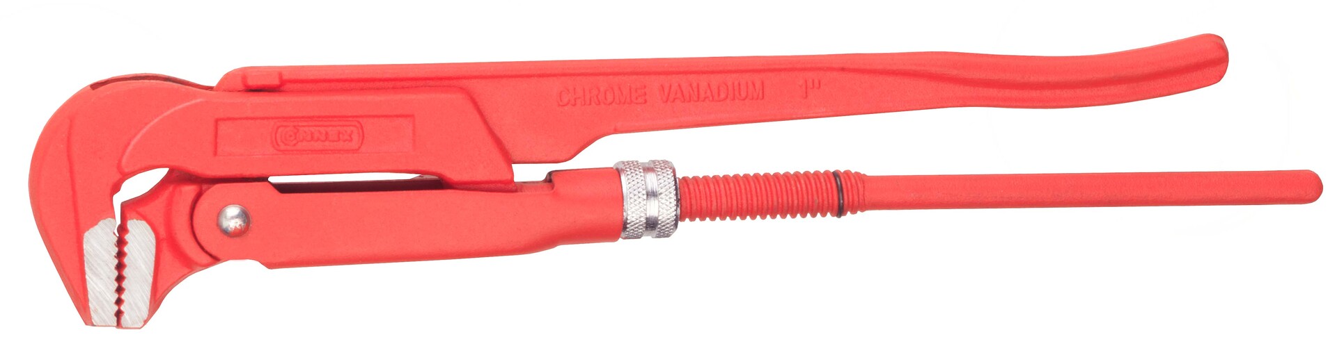 Die Schwedenrohrzange von CONNEX 1 Zoll ist aus Chrom-Vanadium-Stahl geschmiedet und vergütet. Das Zangenmaul ist um 90° abgewinkelt. Die Zähne sind induktiv gehärtet.