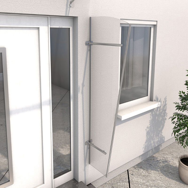 Mit der Seitenblende Hannover schützt du deinen Hauseingang zuverlässig vor seitlichem Regen, Schnee und Wind, während du gleichzeitig eine moderne und stilvolle Optik schaffst. Die Füllung aus 4 mm starkem, klarem Acrylglas sorgt für maximale Lichtdurchlässigkeit, sodass dein Eingangsbereich stets hell und einladend bleibt. Das Material ist besonders robust und witterungsbeständig, was die Blende zu einer langlebigen und pflegeleichten Wahl für dein Zuhause macht. Ein besonderes Designmerkmal ist der abgerundete obere Rand der Acrylglasplatte, der dem Gesamtbild eine elegante Note verleiht. Der Rahmen in hochwertiger Edelstahloptik unterstreicht den modernen Charakter und ist zudem extrem widerstandsfähig gegen Korrosion. In Kombination mit dem Pultvordach Hannover entsteht ein harmonisches Gesamtbild, das deinen Eingangsbereich perfekt in Szene setzt. Das passende Montagematerial für festes Mauerwerk liefern wir dir direkt mit, damit du deine Seitenblende schnell und unkompliziert anbringen kannst. Aktualisiert: Februar 2026 Technische Daten Maße (B x T x H): 30 cm x 60 cm x 185 cm Abdeckung: Acryl, klar Material Rahmen: silber eloxiertes Aluminium Farbe: Silber eloxiert Passend für: Rundbogenvordach Hannover Irrtümer oder Änderungen vorbehalten.