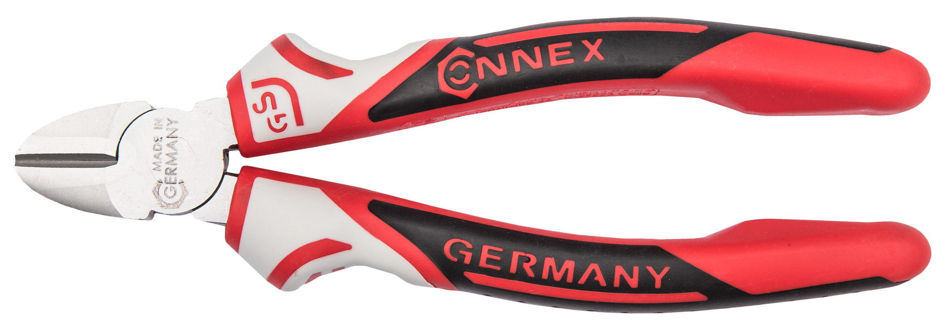Mit dem Seitenschneider aus dem Hause CONNEX können Sie mittelharte Materialien wie Drähte, Kabel oder Nägel mühelos durchtrennen und kürzen. Die robusten Schneiden sind speziell induktiv gehärtet und sorgen für einen sauberen Schnitt. Dank des 3-Komponentengriffs aus Kunststoff liegt der Schneider besonders angenehm in der Hand, wobei der Abgleitschutz erhöhte Arbeitssicherheit bietet. Sie können den Seitenschneider in unserem Onlineshop in unterschiedlichen Längen erhalten.