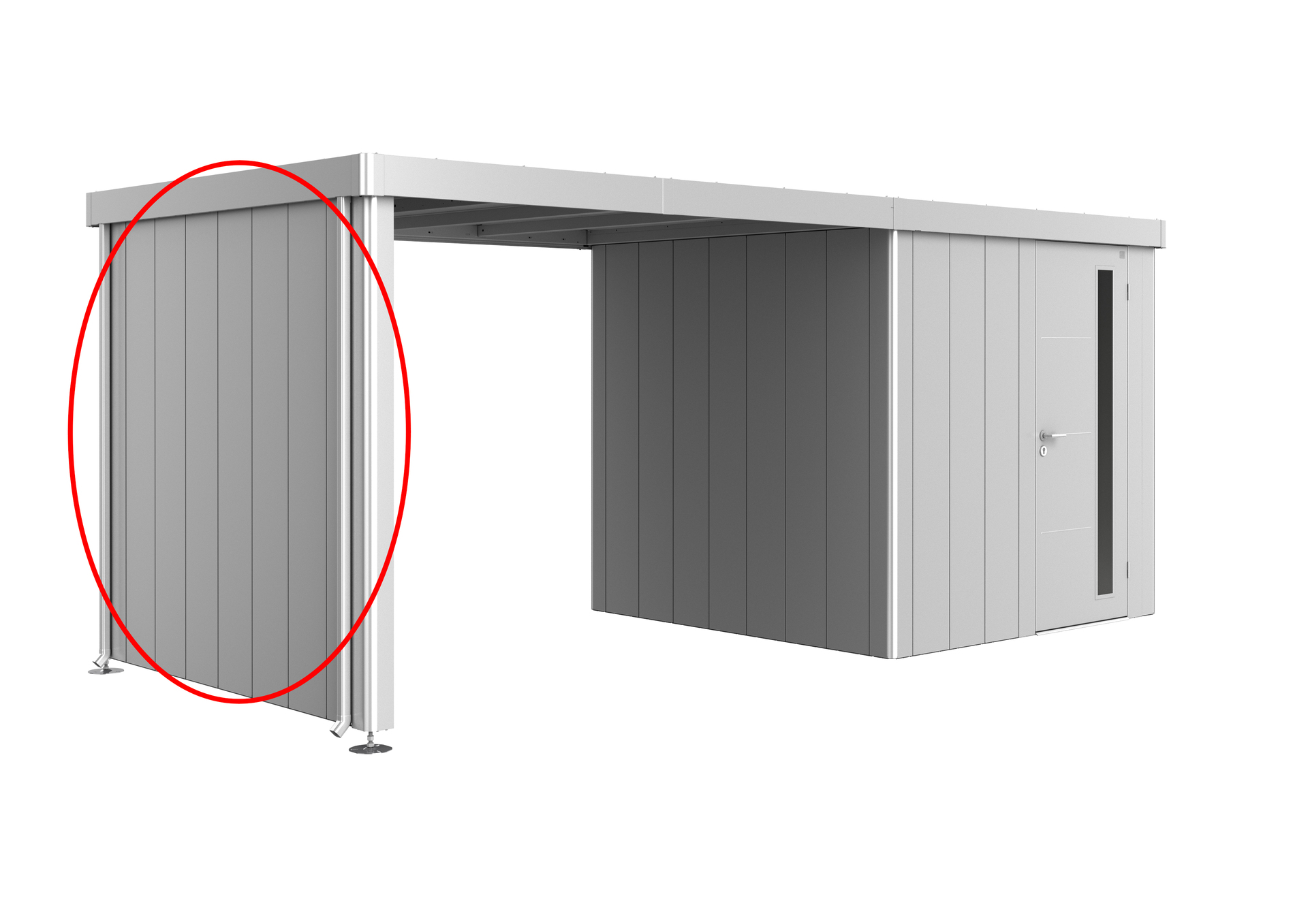 Wahlweise werden eine Rückwand und/oder eine Seitenwand am Seitendach des Gerätehauses HighLine® (ab Gr. H2)/Neo (ab Gr. 2A) angebracht. Sie sind in der Farbe des Hauses erhältlich.