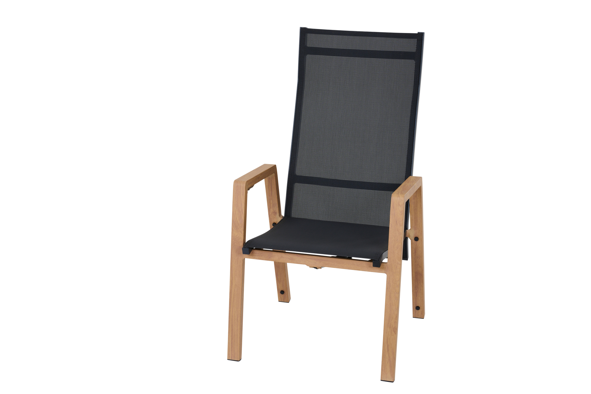 Move Sessel CATANIA, stufenlos verstellbar, Gestell und Armlehnen aus Aluminium foliert in teaklook, Flächen aus Ranotex®-Gewebe 4*4 in grau