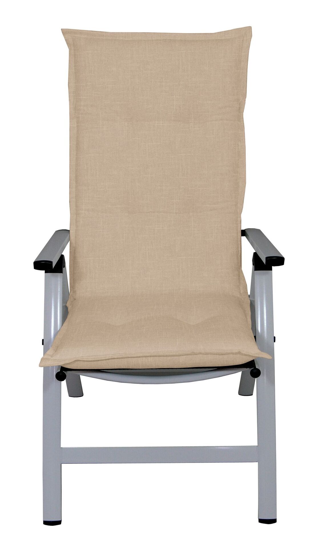 Der hochwertige, langlebige Bezug überzeugt durch seine angenehme Haptik, ist jedoch nicht abnehmbar. Optisch punktet die Auflage mit einem zeitlosen Beigeton, der sich harmonisch in verschiedene Gartenmöbel-Designs einfügt. Vier Kreisheftungen im Rückenbereich und zwei im Sitz sorgen für eine elegante, strukturierte Optik.
