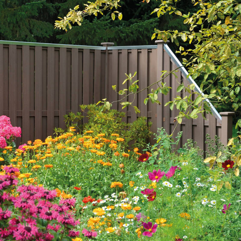 SHANGHAI-Serie braun SHANGHAI Sichtschutzzaunelemente und Tore sind aus WPC gefertigt. Die Lamellen (12 x 100 mm) sind aus Hohlkammerprofilen und fein geriffelt. Die Querriegel (17 x 70 mm) bestehen aus Vollprofilen. Erhältlich in drei Farben und Größen. Im Lieferumfang der Tore gehören Beschläge und Einsteckschloss dazu. Technische Daten: Querriegel als Vollprofil  17 x 70 mm Lamellen als Hohlkammerprofil 12 x 100 mm fein geriffelt braun