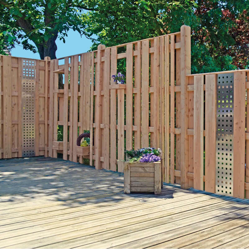 Der Sichtschutzzaun AALBORG ist perfekt, wenn du deinen Garten nicht nur einfrieden, sondern ihn wirklich gestalten möchtest. Durch die Kombination aus geschlossenen Flächen und Rankgitterbereichen wirkt der Zaun modern und gleichzeitig natürlich. So kannst du Privatsphäre schaffen, ohne dass der Garten komplett „dicht“ wirkt und genau die Bereiche schützen, die dir wichtig sind. Besonders praktisch ist die flexible Optik: Je nach Aufbau wirken die Elemente mal ruhiger und blickdichter, mal offener und leichter, ideal als Abschluss an der Terrasse, entlang der Grundstücksgrenze oder als strukturierender Rahmen für Beete und Sitzecken. Die natürliche Lärche bringt Wärme ins Gesamtbild und passt zu modernen wie naturnahen Gärten. So wird AALBORG zu einer Lösung, die nicht nur schützt, sondern deinen Außenbereich sichtbar aufwertet. Technische Daten Marke, Hersteller T&J Zaunmaterial Holz, Lärche Zaunfarbe Natur Riegel 28/70 mm Lamellen 16/140 mm und 16/60 mm Gitterleisten 15 x 30 mm Verarbeitung Edelstahl verschraubt Lieferumfang ohne Befestigungsmaterial Zaunmaße B x H 180 x 180 cm | 180 x 130 cm Irrtümer oder Änderungen vorbehalten.