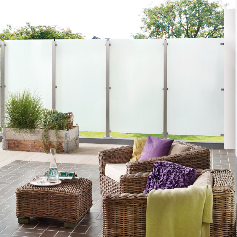 Der Sichtschutzzaun VETRO aus hochwertigem ESG-Glas (Einscheibensicherheitsglas) bietet dir eine extrem langlebige und sichere Lösung für deine Terrasse oder deinen Garten. Durch die thermische Vorspannung ist das Glas besonders schlagfest und widerstandsfähig gegenüber Temperaturschwankungen und starken Windlasten. Die präzise geschliffenen Kanten sorgen nicht nur für eine hochwertige Haptik, sondern garantieren auch eine sichere Handhabung und eine perfekte Passform bei der Montage. Optisch ist das Dekor 84 ein absolutes Highlight, das durch sein raffiniertes Zusammenspiel aus satinierten Streifen und Flächen besticht. Dieses Design bietet dir einen effektiven Sichtschutz, ohne den Bereich einzuengen, da es weiterhin ausreichend Tageslicht durchscheinen lässt. Die satinierte Oberfläche wirkt edel und zeitlos, wodurch dein Außenbereich eine exklusive, moderne Ausstrahlung erhält, die sich harmonisch in eine anspruchsvolle Gartenarchitektur einfügt. Da Glas ein absolut witterungsbeständiges Material ist, bleibt die brillante Optik des Zauns über Jahrzehnte hinweg erhalten, ohne zu verblassen oder zu verrotten. Die Reinigung gestaltet sich für dich denkbar einfach, da Schmutz auf der glatten Oberfläche kaum Halt findet und meist mit klarem Wasser abgewaschen werden kann. Wenn du eine wartungsfreie und optisch herausragende Lösung suchst, die Eleganz mit höchster Zuverlässigkeit verbindet, ist dieser VETRO Glaszaun die ideale Wahl für dich. Technische Daten Produktart: Sichtschutzzaun Material: Glas Farbe: satiniert Verarbeitung: ESG Glas | Kanten geschliffen Zaunmaße: 51,5 x 120 cm | 103 x 120 cm | 120 x 120 cm | 51,5 x 180 cm | 103 x 180 cm | 120 x 180 cm | 103 x 120/180 cm | 103 x 180/120 cm | 120 x 120/180 cm | 120 x 180/120 cm | 98,7 x 180 cm Irrtümer oder Änderungen vorbehalten.