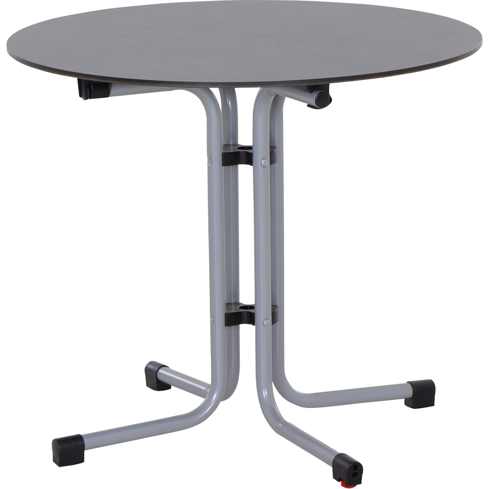 – Ausführung: Klapptisch, höhenverstellbar, – Farbe: silber, – Form: rund, – Maße: 80x80x71cm, – Material: Stahl, – Produktart: Gartentisch, – Tischplatte: HPL, – zusammenklappbar: Ja