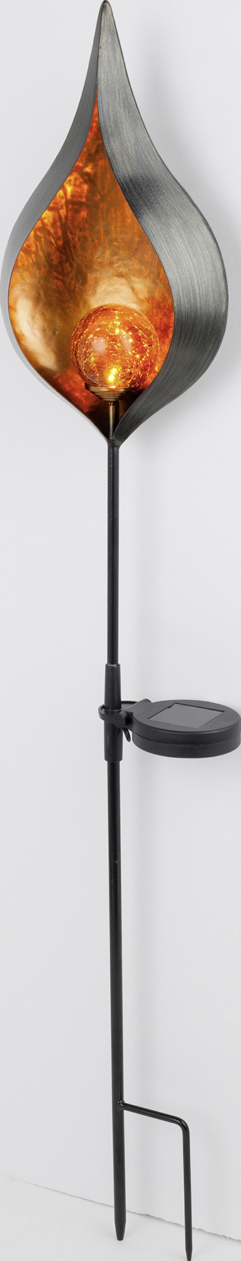 Die Solarleuchte Swante ist aus Metall und Glas gefertigt. Nach Schutzklasse IP44 ist sie ideal für den Außenbereich geeignet. Die LED ist bernsteinfarben, außerdem ist ein Dämmerungssensor und An-/Aus-Schalter enthalten. Die Höhe der Solarlampe beträgt ca. 90 cm. Die Lieferung erfolgt inkl. Batterie.