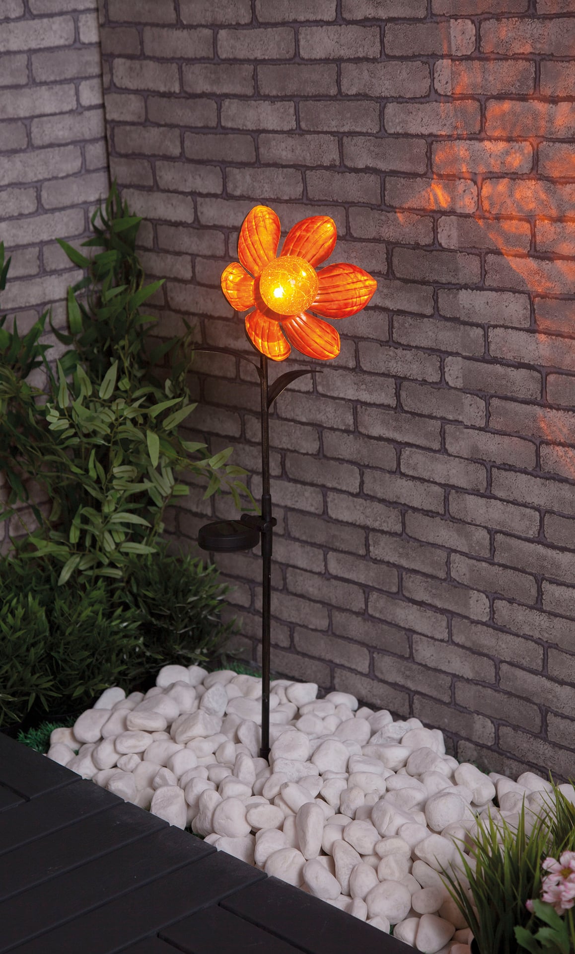 Außergewöhnliche Solarleuchte in Blumenform, die einfach in den Boden gesteckt wird.