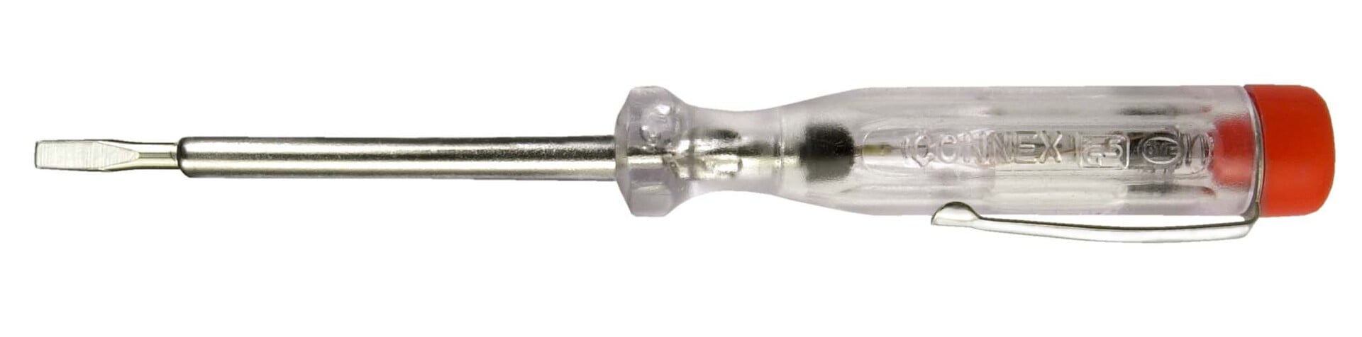 Der Spannungsprüfer von CONNEX entspricht der VDE Norm und hat die GS Prüfung. Die Klinge ist 65 mm oder 100 mm lang und zusätzlich hat der Spannungsprüfer einen Metallclip. Made in Germany.