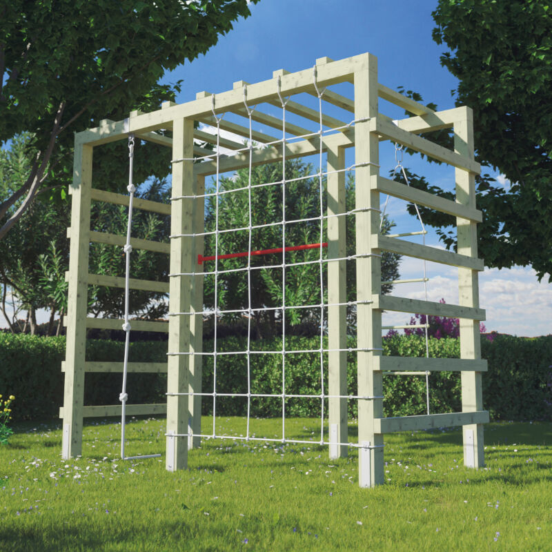 BEN Spielanlage Die BEN Spielanlage ist aus druckimprägnierter Kiefer/Fichte gefertigt und hat ein Gesamtmaß von (L x B x H) 240 x 120 x 219 cm. Mit dabei sind eine Reckstange, ein Kletterseil, eine Strickleiter sowie Montagezubehör. Mit dieser vielfältigen Spielanlage in Ihrem Garten wird Kindern nie langweilig. Für die Verankerung sind 6 H-Bodenanker notwendig, diese sind im Lieferumfang nicht enthalten. Technische Daten: aus Kiefer/Fichte druckimprägniert 240 x 120 x 219 cm mit Kletternetz 120 x 200 cm Recktsange 125 cm lang Kletterseil Strickleiter inkl. Montagezubehör