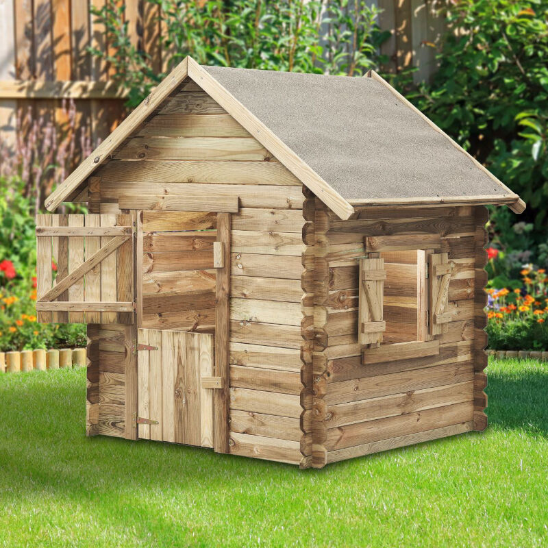 STEFFI-Kinderspielhaus – das eigene kleine Zuhause im Garten Ein Ort für Fantasie, Spiel und Geborgenheit Das STEFFI-Kinderspielhaus ist ein liebevoll gestalteter Rückzugsort für Kinder, der zum Spielen, Träumen und kreativ sein einlädt. Mit seinen kompakten Maßen von 120 x 120 x 160 cm passt es in nahezu jeden Garten und bietet dennoch ausreichend Platz für kleine Abenteuer. Robuste Verarbeitung und wetterfeste Materialien Gefertigt aus druckimprägniertem Kiefer- oder Fichtenholz, ist das Spielhaus wetterbeständig und langlebig. Das Dach aus robuster Dachpappe schützt zuverlässig vor Regen und Sonne. Der vormontierte Bausatz ermöglicht eine zügige und unkomplizierte Montage. Spielspaß mit Tür und Fenster wie im echten Haus Dank der niedlichen Klöntür und dem kleinen Fenster wird das Spielhaus schnell zum Lieblingsplatz im Garten. Ob als Kaufladen, Rückzugsort oder Mini-Wohnhaus – die Nutzungsmöglichkeiten sind vielfältig und regen die Fantasie an. Technische Daten im Überblick Gesamtmaß: 120 x 120 x 160 cm Material: druckimprägniertes Holz (Kiefer/Fichte) Dach: mit wetterfester Dachpappe Mit Klöntür und Fenster Lieferung als kompletter Bausatz Das STEFFI-Kinderspielhaus bringt Freude und Spielspaß in jeden Garten – ein echtes Highlight für kleine Entdeckerinnen und Entdecker.