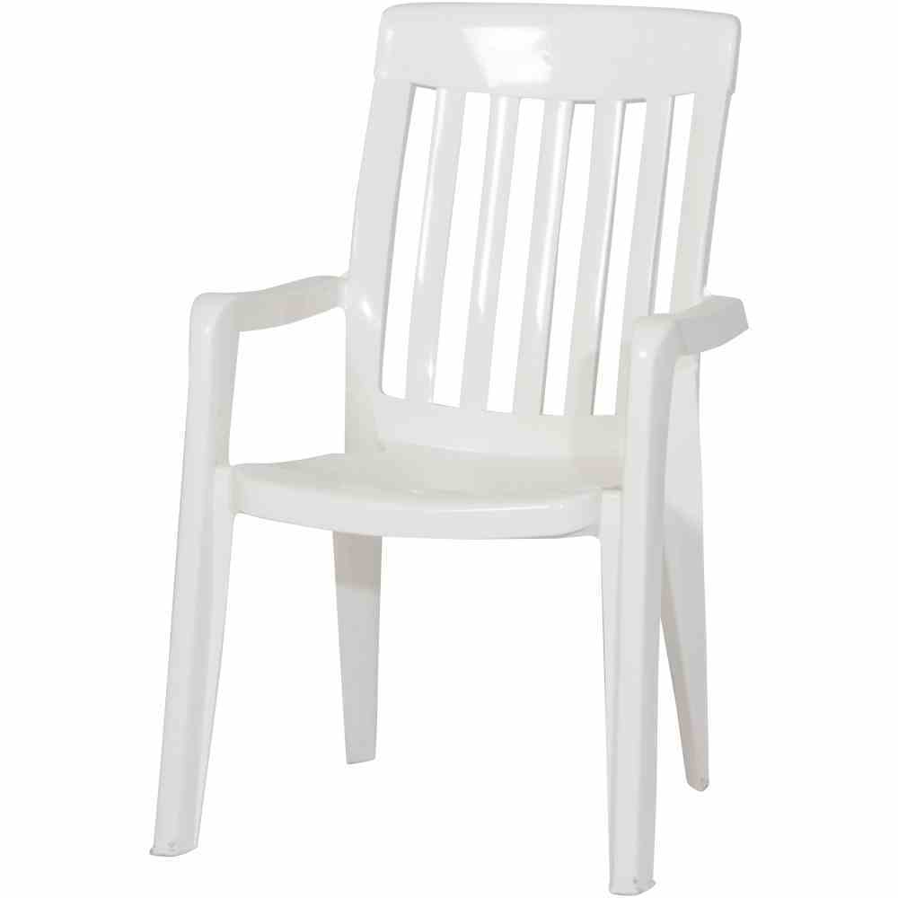 – Breite: 59, – Farbe Bezug: grau, – Gestellfarbe: weiß, – Höhe: 92, – Länge: 65, – Material: Kunststoff/Armlehnen: Kunststoff, – mit Armlehnen: Ja, – Produktart: Gartensessel, – Stapelbar: Ja, – zusammenklappbar: Nein