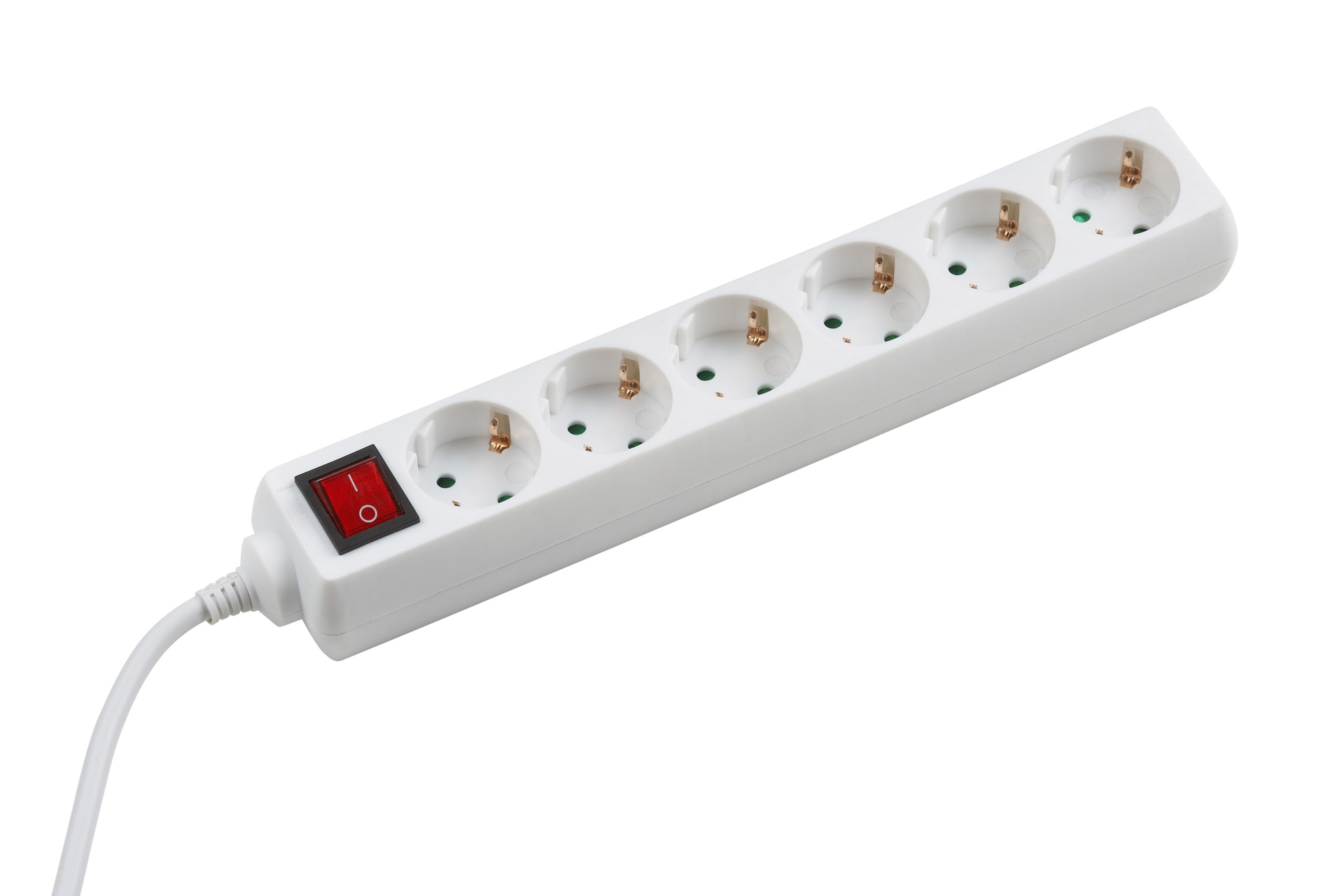 Steckdosenleiste 6-fach mit Schalter, weiß, mit integriertem erhöhten Berührungsschutz und beleuchtetem Schalter (2-polig), Zuleitung H05VV-F 3G1,5 mm², mit Schutzkontakt-Stecker, Länge: 1,4m, zur Anwendung nur im trockenen Innenbereich, 16A, 250V~, 3.500W