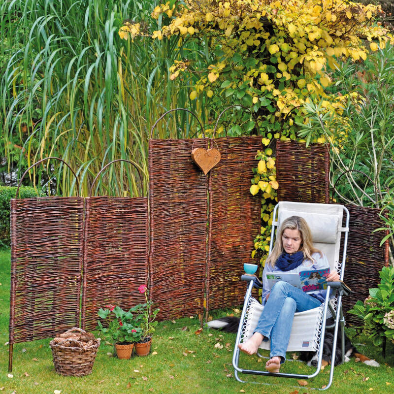 Der ALESSIA-Steckparavent aus hochwertigem Weidengeflecht bietet dir einen natürlichen und zugleich äußerst robusten Sichtschutz für deinen Garten oder die Terrasse. Die Weidenruten sind sorgfältig von Hand verflochten, was jedem Element eine individuelle Note und eine hohe Stabilität verleiht. Dank der Behandlung mit speziellem Öl ist das Naturmaterial optimal vor Feuchtigkeit und vorzeitigem Ergrauen geschützt, sodass du dich auf eine lange Lebensdauer und hohe Zuverlässigkeit verlassen kannst. Optisch besticht der Paravent durch seinen warmen, rotbraunen Farbton und die lebendige Struktur des echten Naturmaterials. Er fügt sich harmonisch in jede grüne Umgebung ein und schafft sofort eine gemütliche, private Atmosphäre in deinem Außenbereich. Die feine Flechtoptik wirkt edel und zeitlos, wodurch der Steckparavent nicht nur als funktionaler Wind- und Sichtschutz dient, sondern auch als geschmackvolles Gestaltungselement überzeugt. Durch das praktische Stecksystem gelingt dir der Aufbau schnell und vollkommen unkompliziert, sodass du deinen Ruhebereich im Handumdrehen abgrenzen kannst. Die ölbehandelte Oberfläche ist zudem besonders pflegeleicht und bewahrt über lange Zeit ihre geschmeidige Haptik sowie die satte Farbkraft. Wenn du nach einer natürlichen und qualitativ hochwertigen Lösung suchst, die Ästhetik mit Funktionalität verbindet, ist dieser Weidenparavent genau die richtige Wahl für dich. Technische Daten Produktart Steckparavent Material Holz Materialart ölbehandelte Weide Maße 56 cm x 90/116 cm | 56 cm x 130/156 cm Steckpfahldurchmesser ca. 3 cm Steckpfahllänge ca. 30 cm Irrtümer oder Änderungen vorbehalten.