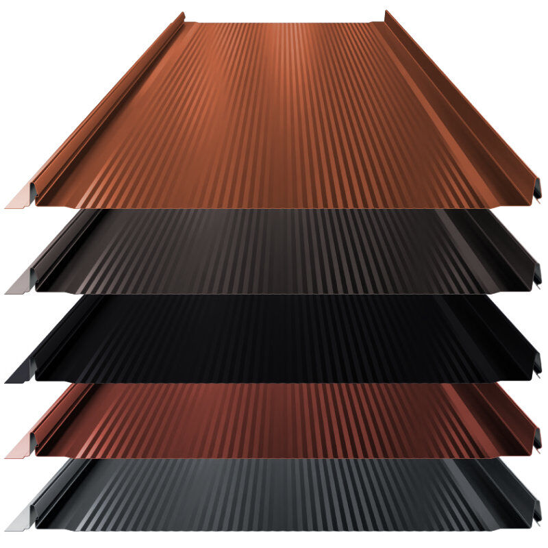 High-Tech Paneel mit Mattpolyester 35 µm Beschichtung Das High-Tech Paneel mit 35 µm starker Mattpolyester-Beschichtung vereint moderne Ästhetik mit solider Alltagstauglichkeit. Die matte Oberfläche reduziert Lichtreflexionen, sorgt für eine ruhige Optik und bietet gleichzeitig langanhaltenden Schutz gegen Umwelteinflüsse. Durch die Nanowellen-Technologie werden Spannungen auf der Blechoberfläche minimiert, was das Paneel formstabil und montagefreundlich macht. Die Beschichtung auf Polyesterbasis schützt zuverlässig vor Korrosion und UV-Strahlung und eignet sich hervorragend für den Einsatz an Dach und Fassade. Dank Klicksystem mit verdeckter Befestigung gelingt die Montage sauber und zeitsparend. Die Optik bleibt gleichmäßig und schraubenfrei – ideal für moderne Architekturprojekte mit klarer Linienführung. Technische Daten: Gesamtbreite: ca. 528 mm Nutzbare Deckbreite: 495 mm Materialstärke: 0,5 mm Stehfalz: 32 mm Klickhöhe: 27,5 mm Maximale Länge: 8.000 mm Das High-Tech Paneel mit 35 µm Mattpolyester ist eine robuste, wirtschaftliche Lösung für moderne wie klassische Gebäudekonzepte.