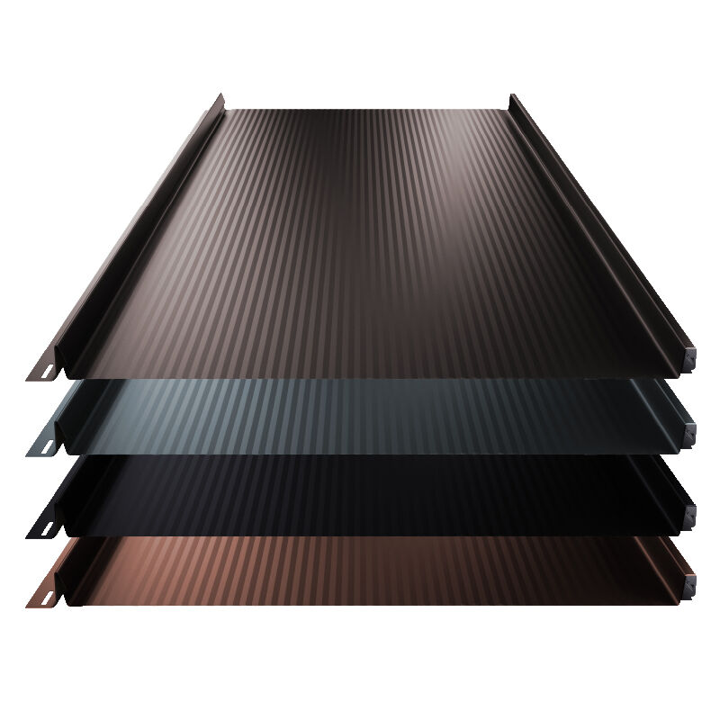 Stehfalz Terrano Stahl 0,50mm Stärke 525mm Breite 35µm Matt Standard Farbbeschichtung mit Nanowelle Das Terrano-Paneel wird sowohl in der traditionellen als auch in der zeitgenössischen Architektur eingesetzt und verleiht Ihrem Dach oder Ihrer Fassade ein ästhetisches Erscheinungsbild. Zusätzliche Stabilität erfährt das Paneel durch die Integration von Nanowellen und die innovative Click-Lock-Technologie. Die Nanowellenprägung reflektiert Lichtreflexe, wodurch der Wellen-Effekt, der durch Spannungen und leichte Bodenunebenheiten verursacht wird, weniger deutlich sichtbar ist. Die innovative Click-Lock-Technologie ermöglicht nicht nur eine verdeckte Schraubmontage, sondern gewährleistet auch mehr Sicherheit und Stabilität. Durch spezifische Knicke in den Falzen rasten die Bleche ineinander ein und verleihen Ihrem Dach oder Ihrer Fassade dadurch eine betont höhere Stabilität. Das Stehfalzprofil Terrano weist eine Blechstärke von 0,50 mm und eine 35µm Matt Standard Farbbeschichtung auf. Diese matte Lackierung verleiht dem Blech nicht nur sein markantes Erscheinungsbild, sondern bietet auch eine gesteigerte Kratzfestigkeit im Vergleich zu herkömmlichen Polyesterlackierungen. Eine Auswahl verschiedener Farbvarianten steht zur Verfügung, um die Optik des Daches oder der Fassade nach individuellen Wünschen anzupassen. Der Hersteller gewährt eine Garantie von 25 Jahren. Das Stehfalzblech hat eine Gesamtbreite von 525mm, eine Deckbreite von 495mm, die Höhe des Stehfalzes beträgt 28mm und die „Click-Höhe“ liegt bei 30,5mm. Der Längenzuschnitt der Stehfalzleche erfolgt cm-genau auf Maß, präzise gemäß Ihren speziellen Anforderungen und das ohne zusätzliche Kosten. Das Stehfalzprofil ist mit oder ohne Antitropfbeschichtung erhältlich. Bitte beachten Sie, dass eine Antitropfbeschichtung ausschließlich bei Stehfalzblechen für die Dachmontage verwendet wird. Bei Wandblechen für die Fassade wird keine Antitropfbeschichtung benutzt. Optional gegen Aufpreis: Antitropfbeschichtung Hydrocontrol Bei großen Temperaturschwankungen kann sich bei unisolierten Metalldachprofilen Kondenswasser unter dem Dach bilden. Um dieses zu vermeiden gibt es die Antitropfbeschichtung. Dies ist eine selbstklebende Membran / Vlies, welche an der Unterseite des Bleches befestigt wird. Die Vliesstoffbeschichtung verhindert das Abtropfen von Kondenswasser und nimmt dieses auf. Gleichzeitig reduziert die Antitropfbeschichtung die Geräuschentwicklung bei Starkregen und Hagel, da die Schwingungen des Bleches durch das Vlies gedämpft werden. Die Enden der Vliesstoffbeschichtung (ca. 10 – 15cm) müssen selber abgeflammt bzw. mit Vlieslack gesättigt werden. Dadurch wird vermieden, dass Regenwasser durch die Kapillarwirkung in das Vlies ziehen kann und abtropft. Optional gegen Aufpreis: IZO-System Das IZO System besteht aus einer werkseitig angebrachten EPDM Matte, die eine erhöhte Steifigkeit der Platten gewährleistet. Ein bedeutender Vorteil dieses Systems liegt darin, dass die Form des Terrano Stehfalz ohne den Wellen-Effekt, erhalten bleibt. Die IZO Beschichtung bietet zusätzliche Vorteile wie eine schnellere und gleichmäßigere Erwärmung der Dachplatten sowie eine Reduzierung von Geräuschen bei Regen und Wind. Die EPDM Beschichtung absorbiert typische Plattenvibrationen und trägt somit zu einer angenehmen Ruhe im Inneren Ihres Hauses bei. Unsere Beschichtung Bleche mit der 35µm Matt Standard Beschichtung sind äußerst angesehen bei Metalldacheindeckungen. Heutzutage werden beidseitig verzinkte Bleche verwendet, was für einen besseren Schutz vor Korrosion sorgt. Die äußerste Farbschicht verleiht dem Produkt eine matte und raue Oberfläche sowie seine endgültige Textur. Des Weiteren schützt die Farbbeschichtung das Blech vor äußeren Einflüssen. Der Hersteller gewährt eine Garantie von 25 Jahren auf die 35µm Matt Standard Beschichtung.
