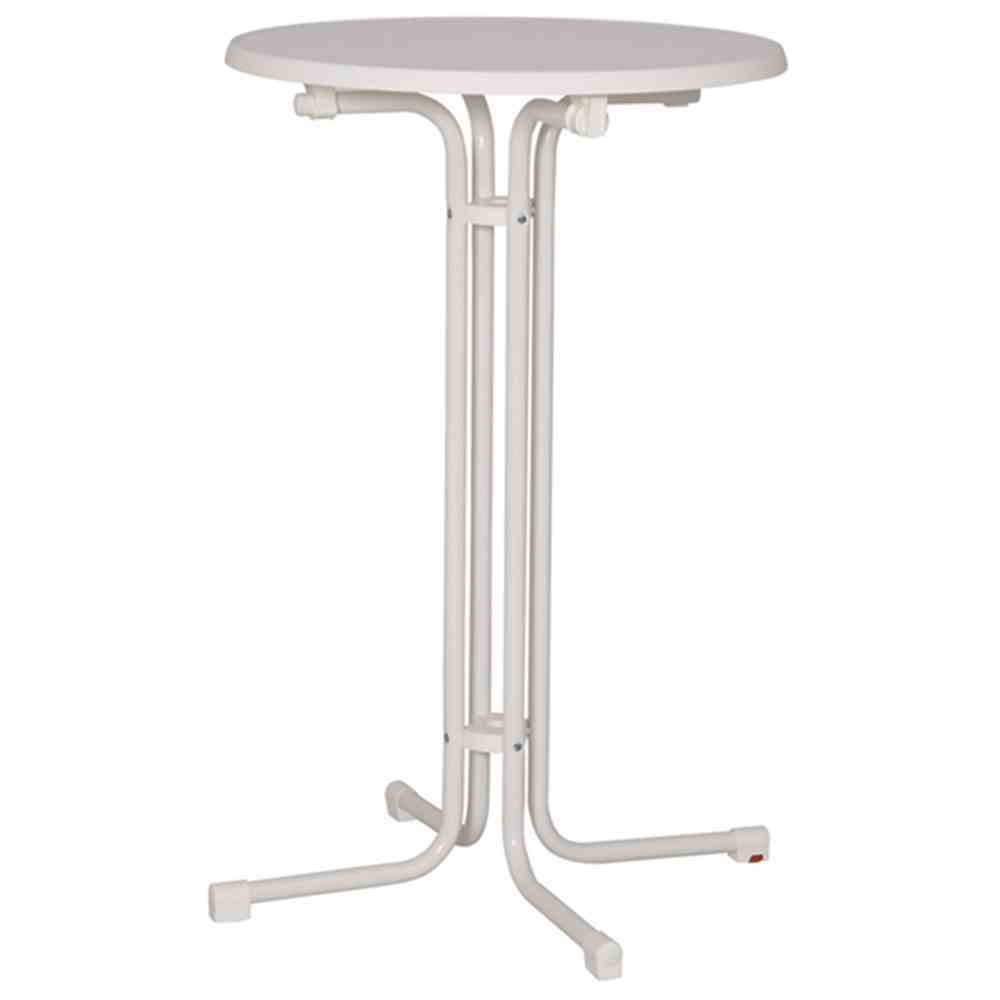 Stehtisch MFG Stehtische, Ø 85×110 cm, Gestell aus Stahl pulverbeschichtet in weiß, Tischplatte aus Sevelit® in weiß, rund, höhenverstellbar, empfohlen für max. 4 Personen, made in Germany, mit Höhenausgleich, klappbar