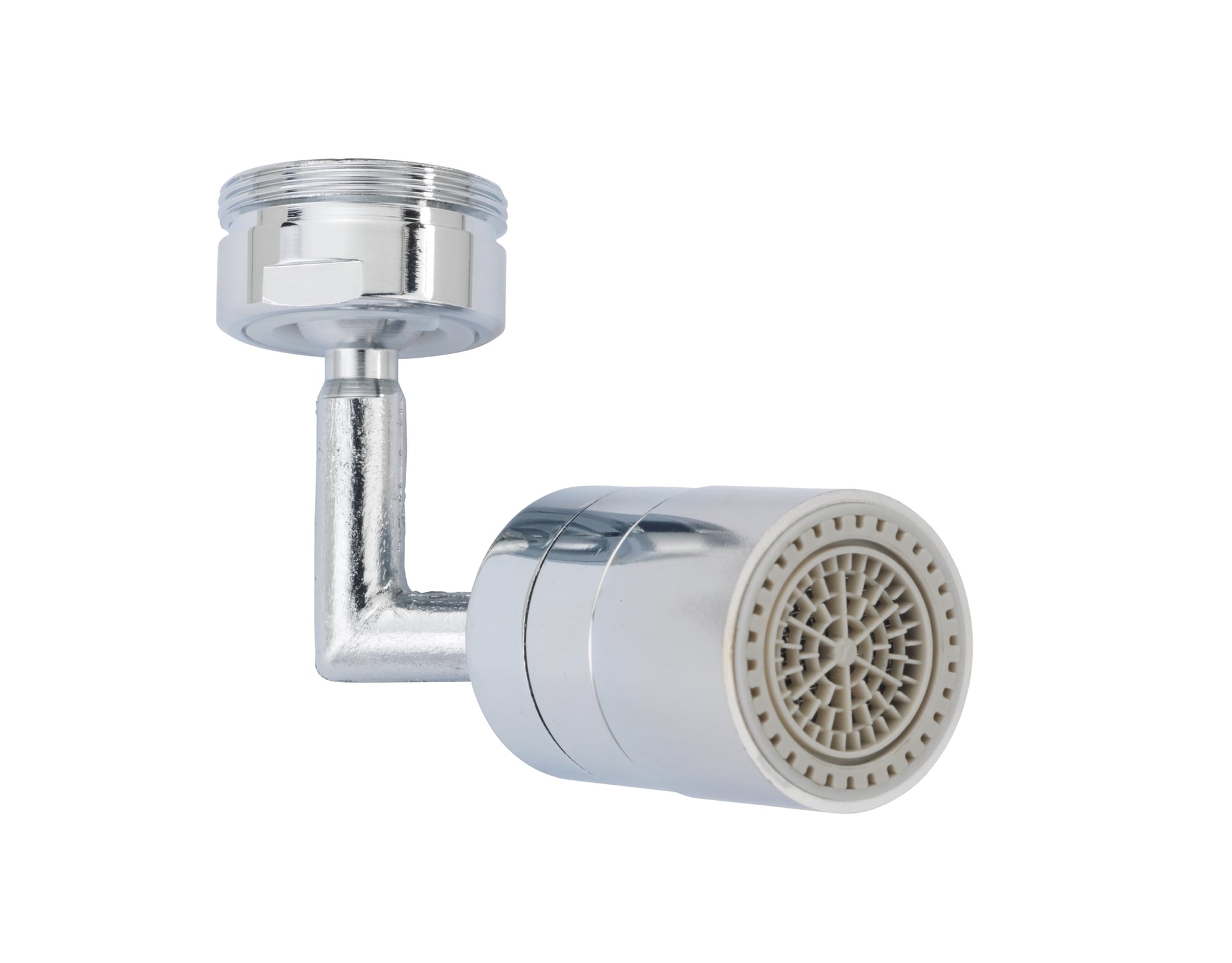 Mit dem verchromten Perlator aus Messing gehört diese Komplikation der Vergangenheit an. Zwei Gelenke, die sich jeweils um 360° schwenken lassen, sorgen dafür, dass der Wasserstrahl auch eine mittlere Entfernung zurücklegen kann. So können Sie den zu füllenden Eimer bequem auf dem Waschbecken abstellen. Neben der Verstellung nach oben können Sie den wassersparenden Perlator mit zwei strahlarten auch nach rechts und links verstellen. Diese 360° Einstellung macht jede Ecke erreichbar. Neben dem Einsatz im Badezimmer bietet sich der Strahlregler auch für die Küche an. Auf diese Weise können Sie Obst und Gemüse bequem waschen oder Küchenhelfer wie die Auflaufform außerhalb des Spülbeckens aufgestellt entspannt mit Wasser zum Einweichen füllen.