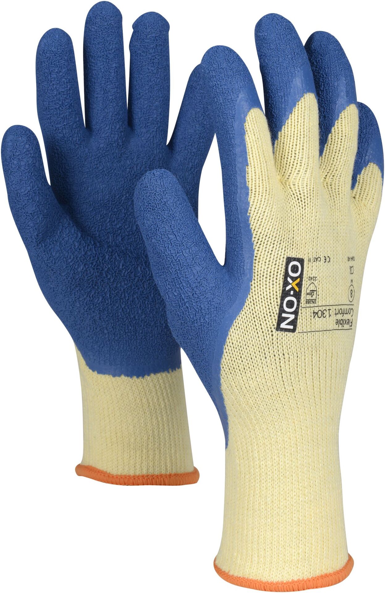 Der OX-ON Flexible Comfort 1304 ist der robuste Arbeitshandschuh für alle , die bei Anlagen-, Bau-, sowie land- und forstwirtschaftlichen Arbeiten festen Halt und Schutz Ihrer Hände benötigen. Mit dem Flexible Comfort 1304 erhalten Sie einen fingergetauchten Strickhandschuh, der vollen Komfort und Beweglichkeit gewährleistet – auch für anspruchsvollere Arbeitsaufgaben. Das Gewebe besteht aus Polyester und Baumwolle, was Ihnen eine bequeme Passform, hohe Strapazierfähigkeit und eine solide Qualität bietet. Die Handinnenfläche ist in einem Muster mit Latex beschichtet, um einen unübertroffen sicheren Griff zu gewährleisten. Beim Flexible Comfort 1304 ist der gesamte Daumen zudem durch Latex geschützt, wodurch der Flexible-Handschuh zu einem strapazierfähigen Arbeitshandschuh wird, der auch für den intensiven Gebrauch geeignet ist.