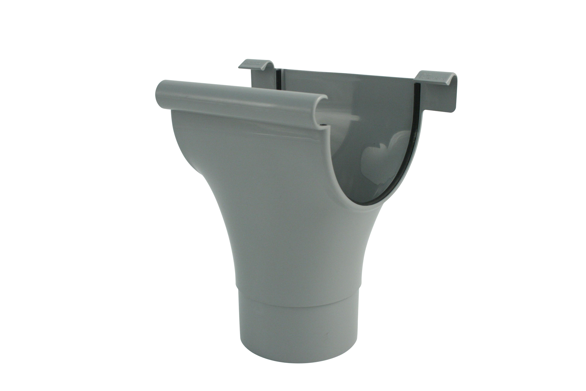 Der Stutzen dient zur Ableitung von Regenwasser in das Fallrohr. Die Dachrinne wird ungeteilt durch den Stutzen geführt, wobei ein Loch für den Wasserablauf in die Dachrinne gesägt oder gebohrt wird. Der Stutzen kann über eine Fallrohrmuffe mit dem Fallrohr oder direkt mit einem Bogen verbunden werden.