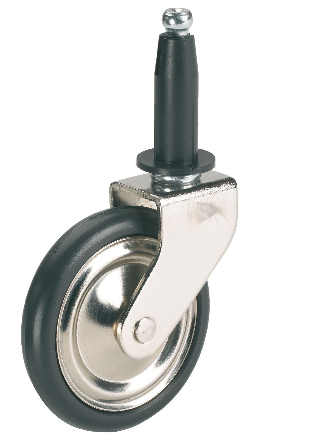 Räder aus vernickeltem Stahlblech mit Laufring aus hochwertigem Kunststoff und Gleitlager