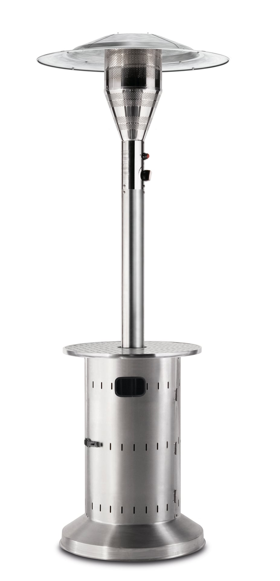 Der Tisch am Terrassenheizer eignet sich als „stummer Diener“ für alles, was man beim gemütlichen Umtrunk auch mal aus der Hand legen möchte. Seine 14 kW Leistungsstärke überzeugt mit angenehmer Wärme, selbst an richtig kalten Tagen. Die herausziehbare Gasflaschenablage ermöglicht ein bequemes und rückenschonendes Austauschen der Gasflasche. Durch seine versenkbare Säule kann der Commercial platzsparend verstaut werden. Das stabile Outdoor Räderset und die ummantelten Transportgriffe ermöglichen jederzeit einen bequemen Standortwechsel und Transport. Darüber hinaus sorgt der große Fuß aus Edelstahl für extra Standsicherheit. Ein besonders wichtiges Argument für die gewerbliche Nutzung ist die integrierte Diebstahlsicherung sowie eine abschließbare Tür zur optimalen Sicherung. Der Commercial kann mit einer Kette gesichert werden und bleibt immer da, wo er bleiben soll.