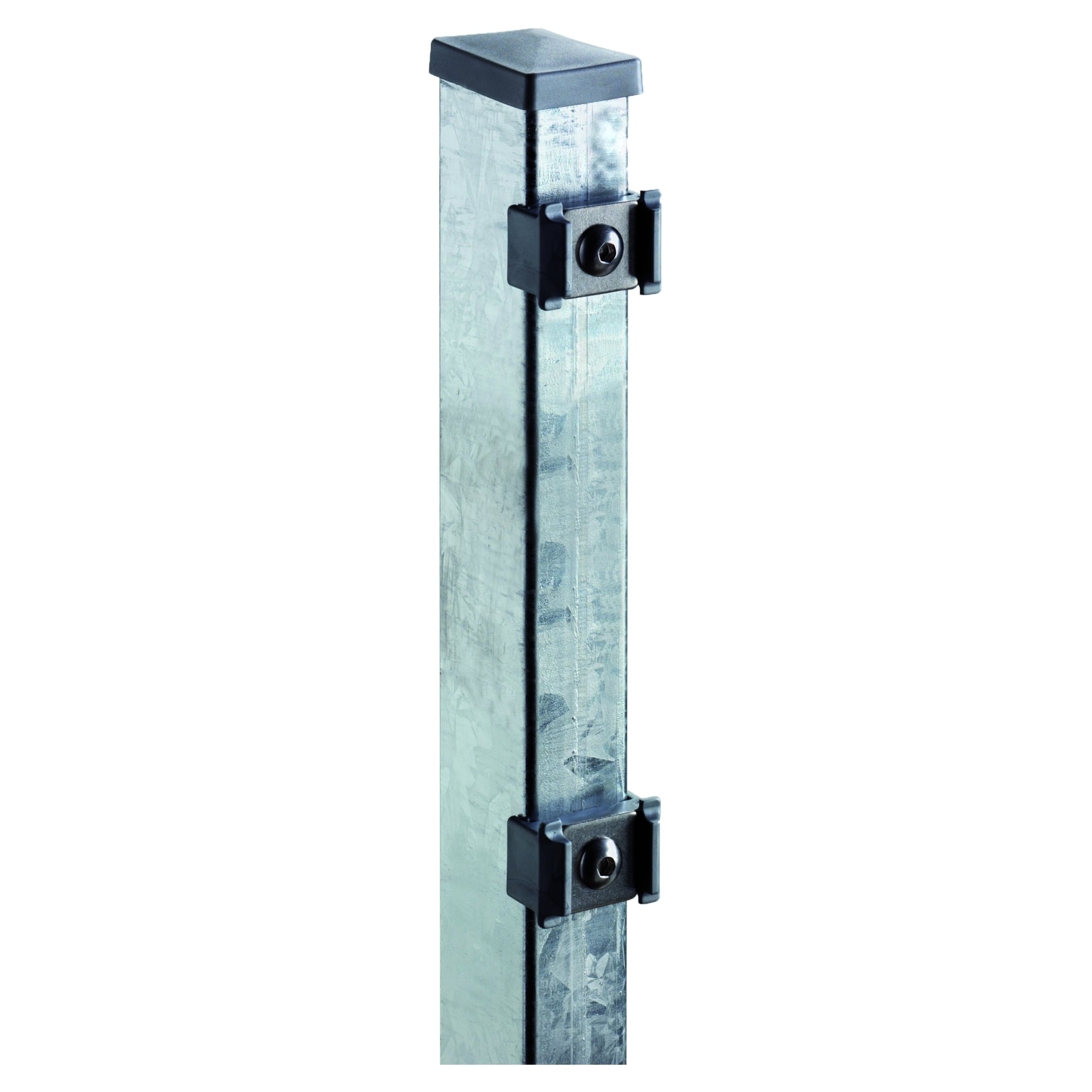 TOM-Zaunpfosten: Rechteckstahlrohr 60 x 40 mm inkl. Zaunhalter und Kunststoffkappe mit Halteplättchen und Innensechskantschraube, zum Einbetonieren, verzinkt und/oder pulverbeschichtet grün (RAL 6005) oder anthrazit (RAL 7016)