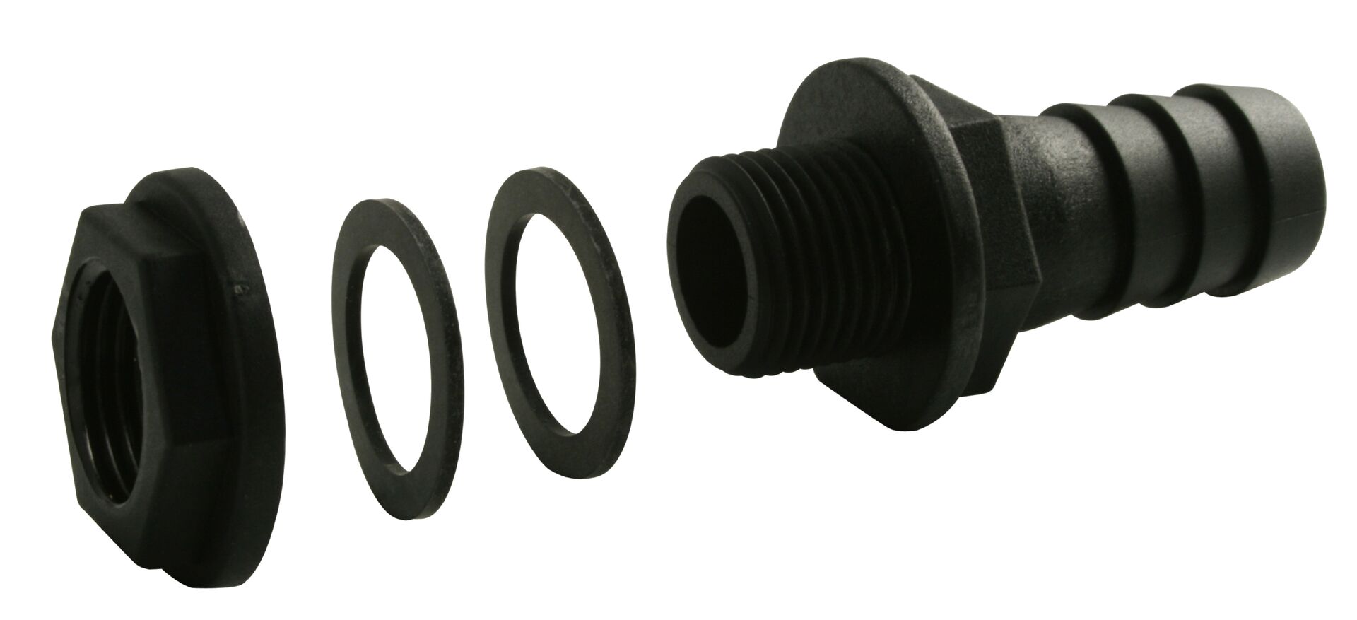 Mit dem Tonnenanschluss 19 mm (3/4″) können mehrere Regenwassertonnen miteinander verbunden werden. Die Schlüsselweite beträgt 27 mm.
