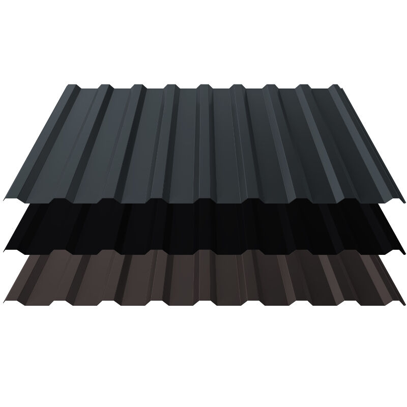Trapezblech T20+ Stahl Dachprofil 0,50mm Stärke 50µm ThyssenKrupp Matt Premium Farbbeschichtung Das Trapez T20+ Dachprofil aus Stahl beeindruckt durch seine klare, geradlinige Form, die es einzigartig macht. Es verfügt über eine Materialstärke von 0,50mm und ist mit einer hochwertigen 50µm ThyssenKrupp Matt Premium Farbbeschichtung versehen, für die der Hersteller großzügige 60 Jahre Garantie gewährt. Die deutlich rauere Oberflächenstruktur, die durch die matte Lackierung entsteht, verleiht dem Dachprofil eine erhebliche Kratzfestigkeit im Vergleich zu herkömmlichen Polyester Lackierungen. Diese Beschichtung ist geringfügig matter als die ThyssenKrupp Matt Beschichtung. Das Trapezblech ist in Varianten sowohl mit als auch ohne Antitropfbeschichtung erhältlich, und der individuelle Längenzuschnitt nach Maß erfolgt gebührenfrei. Durch diese Wahl entscheiden Sie sich nicht nur für ein Trapezblech mit klaren Linien, sondern auch für eine äußerst flexible Lösung, die Ihren speziellen Anforderungen in vollem Umfang entspricht. Das Trapezblech T20+ Dachprofil aus Stahl hat eine Obergurtbreite von 32mm und eine Tiefsickenbreite von 67mm. Die Gesamtbreite des Bleches beträgt 1120mm, die Nutzbreite ist 1070mm und die Profilhöhe liegt bei 19mm. Optional gegen Aufpreis: Antitropfbeschichtung Hydrocontrol Bei großen Temperaturschwankungen kann sich bei unisolierten Metalldachprofilen Kondenswasser unter dem Dach bilden. Um dieses zu vermeiden gibt es die Antitropfbeschichtung. Dies ist eine selbstklebende Membran/ Vlies, welche an der Unterseite des Bleches befestigt wird. Die Vliesstoffbeschichtung verhindert das Abtropfen von Kondenswasser und nimmt dieses auf. Gleichzeitig reduziert die Antitropfbeschichtung die Geräuschentwicklung bei Starkregen und Hagel, da die Schwingungen des Bleches durch das Vlies gedämpft werden. Die Enden der Vliesstoffbeschichtung (ca. 10 – 15cm) müssen selber abgeflammt bzw. mit Vlieslack gesättigt werden. Dadurch wird vermieden, dass Regenwasser durch die Kapillarwirkung in das Vlies ziehen kann und abtropft. Unsere Beschichtung Die ThyssenKrupp Matt Premium Beschichtung zeichnet sich durch ihre grobkörnige matte Oberfläche aus und ist in drei Farben erhältlich. Diese Beschichtung besteht aus insgesamt zwei Schichten, wobei die Farbschicht eine Mindeststärke von 50µm aufweist.
