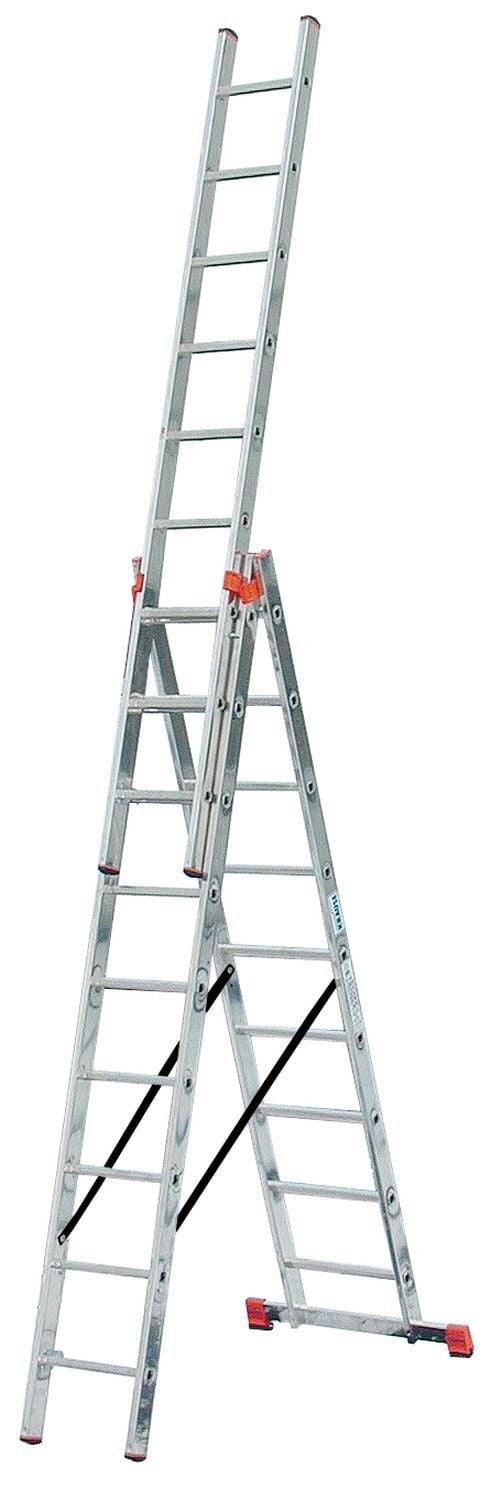 Dreiteilige Aluminium-Vielzweckleiter, einsetzbar als Anlege-, Schiebe- und Stehleiter