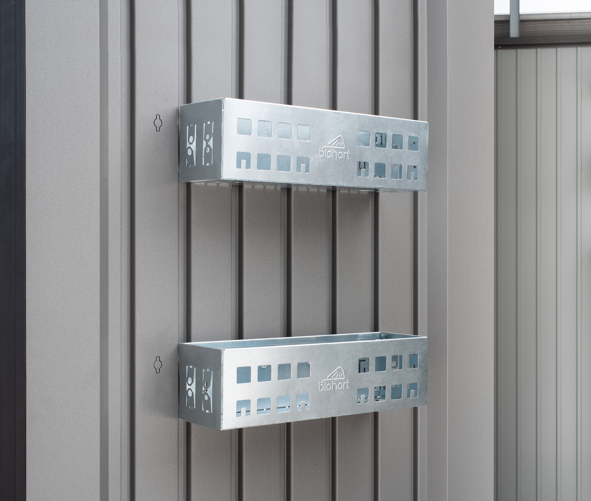 Die Türkörbe können an der Türinnenseite einfach verschraubt werden. Ideal zum griffbereiten Lagern von Gartenwerkzeugen, Handschuhen etc.