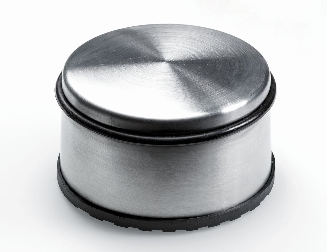 Türstopper mit Edelstahl-Optik Oberfläche. Keine Montage – einfach auf den Boden stellen. Mit Gummi-Rutsch-Stop und Gummi-Anschlagring zum Schutz von Türen und Wänden.
