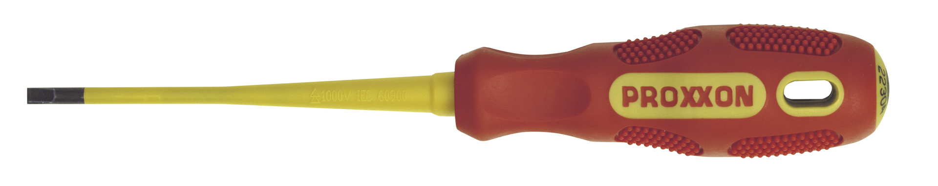 FLEX-DOT-Schraubendreher nach VDE-Standard: für sicheres Arbeiten an spannungsführenden Teilen bis 1.000 V-Wechselspannung. Auf die Klinge gespritzte Schutzisolation, Stück für Stück geprüfte Sicherheit. Gerundete Zwei-Komponenten-Griffform mit flexiblen Noppen “FLEX-DOT” für ermüdungs- und schmerzfreies Arbeiten. Gute Griffigkeit bei schnellem Umgreifen. Hohe Drehmomente und Andruckkräfte durch ausbalanciertes Design für horizontalen und vertikalen Ansatz.