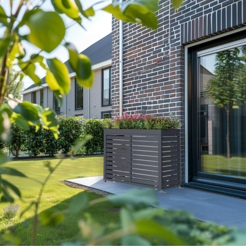 Wärmepumpenverkleidung ELIAS, Stahl verzinkt, pulverbeschichtet anthrazit Die ELIAS Wärmepumpenverkleidung vereint Funktionalität, modernes Design und eine clevere Zusatzfunktion. Gefertigt aus robustem, verzinktem Stahl und pulverbeschichtet in elegantem Anthrazit, schützt sie Ihre Wärmepumpe zuverlässig vor Witterungseinflüssen, Verschmutzung und neugierigen Blicken – und sorgt gleichzeitig für ein aufgeräumtes Erscheinungsbild im Außenbereich. Ein besonderes Highlight: Der integrierte Pflanzdeckel verwandelt die Verkleidung in eine stilvolle, begrünbare Fläche – ideal, um Ihren Garten noch individueller zu gestalten und Technik elegant zu kaschieren. Dank der durchdachten Konstruktion und dem mitgelieferten Montagematerial ist die Verkleidung schnell und einfach aufgebaut. Die langlebige Pulverbeschichtung sorgt für eine hohe Widerstandsfähigkeit gegenüber Rost und Kratzern. Vorteile auf einen Blick: Hochwertiger, verzinkter Stahl Pulverbeschichtet in Anthrazit mit Pflanzdeckel Inklusive Montagematerial Optimaler Schutz für Ihre Wärmepumpe Ideal für den privaten und gewerblichen Bereich