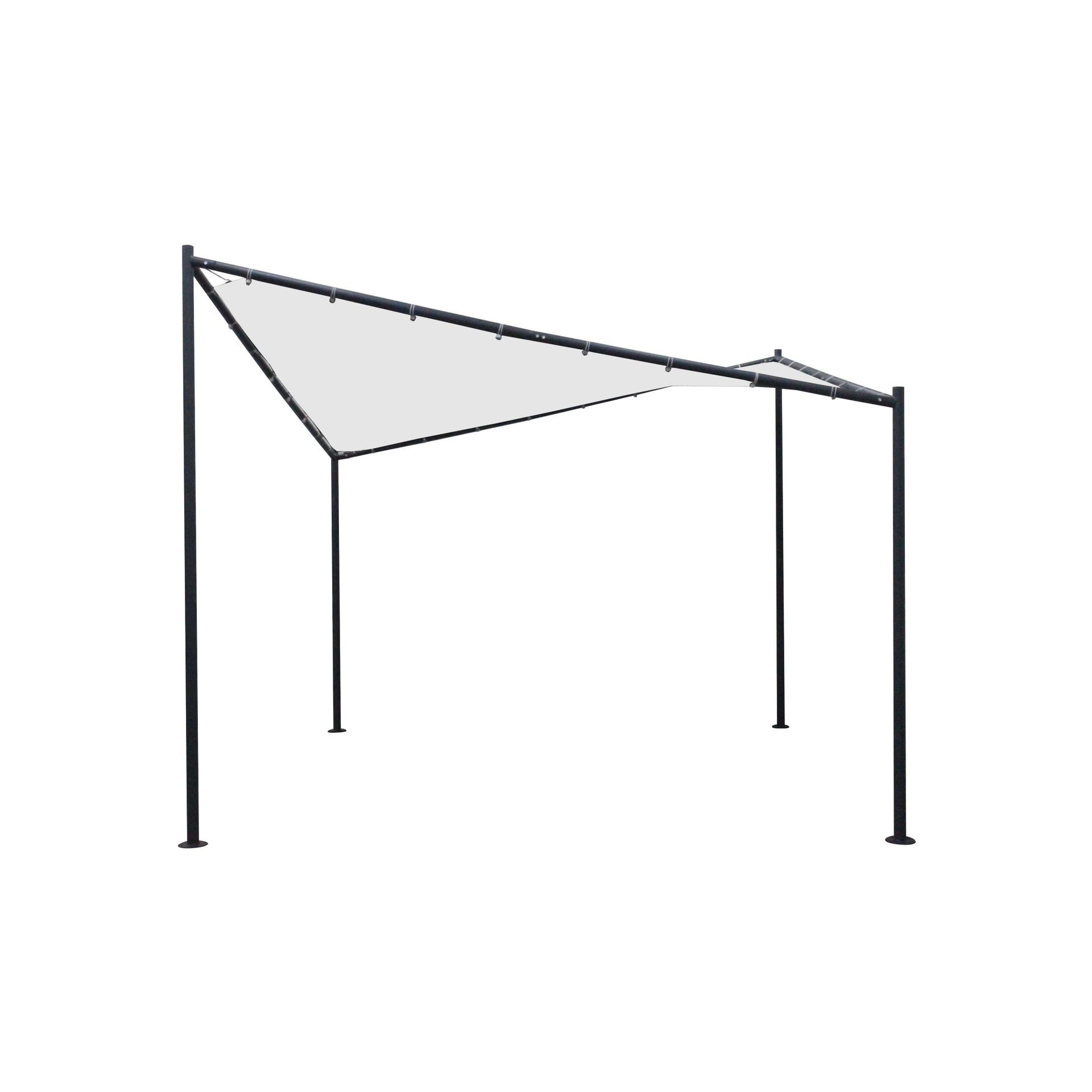Walmdachpavillon mit Stahlgestell schwarz. Dachplane Polyester PVC-beschichtet, weiß.